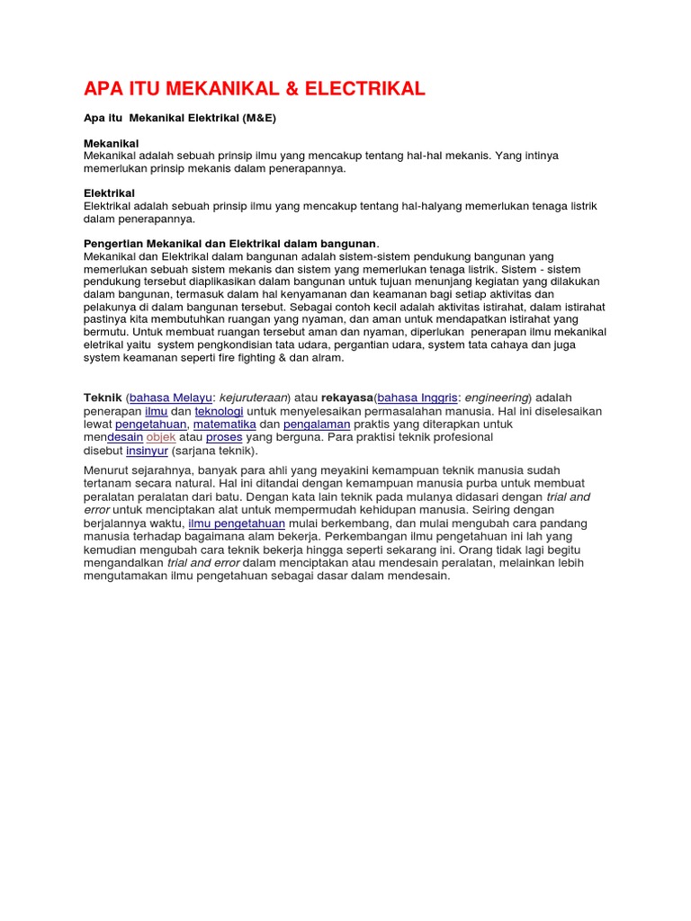 Maksud Mekanikal Dan Elektrikal Dalam Bahasa Melayu